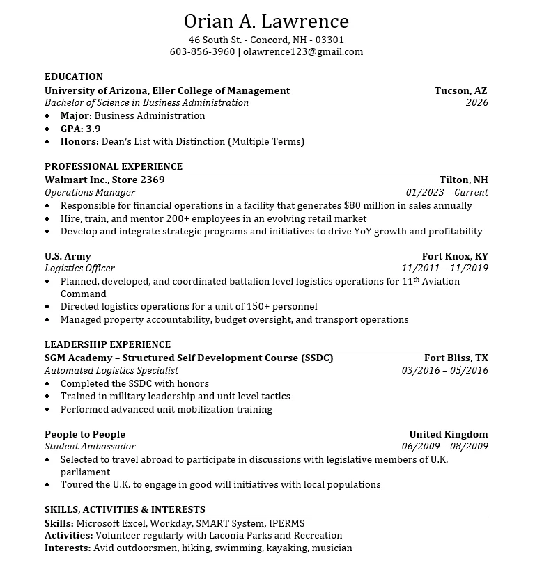 “My experiences in both military and civilian settings have made me a robust and adaptive leader”.